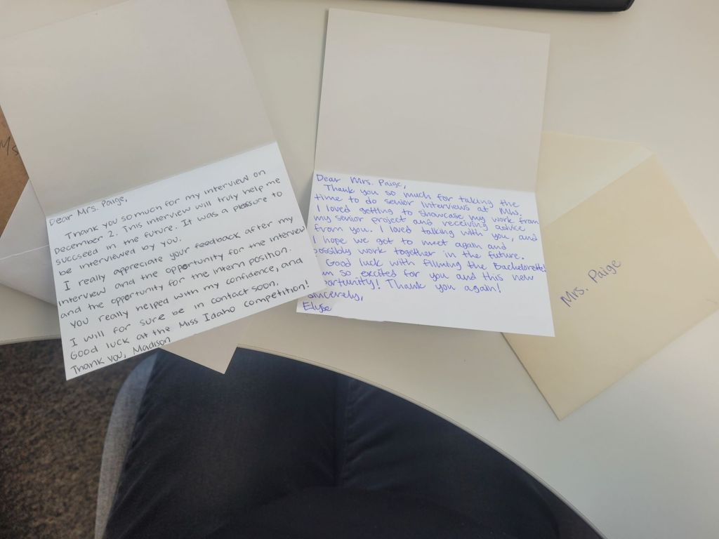 One of my favorite traditions is receiving thank you cards from the students after the interviews. Their gratitude and reflections on what they learned remind me how meaningful this experience is for everyone involved.
